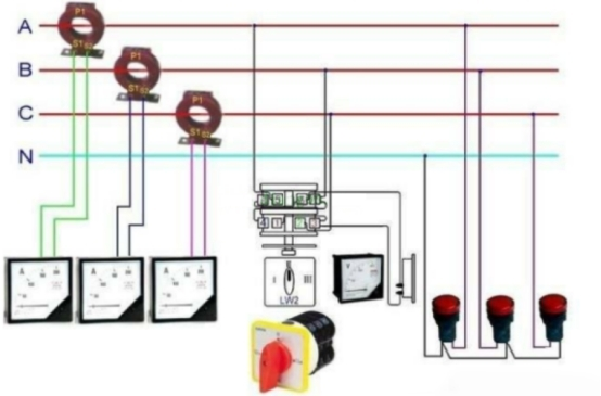 電流互感器是一種特別的變壓器,它的作用是把大電流變成規范小電流,配合檢測外表、計量外表和繼電器等設備作業。這樣可以起到擴展外表檢測規劃,進步電路的穩定性和安全性的作用。電流互感器的電流接線原理圖如下圖所示,電流互感器的一次線圈串聯在一次主電路中,其二次接入的外表和繼電器的線圈也全部是串聯的。